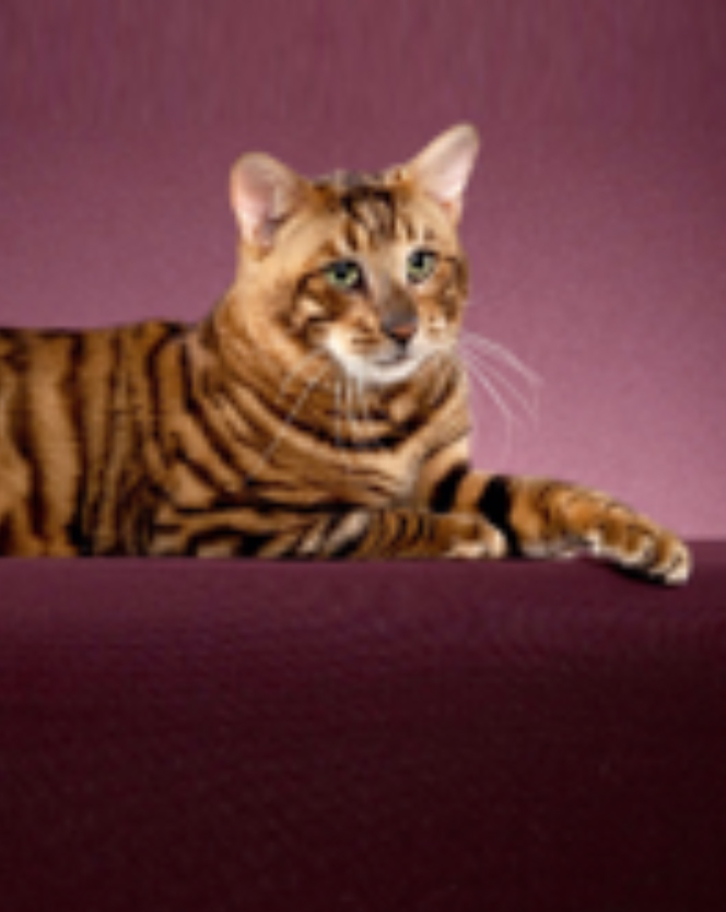 Bengal (Ben) including Blue and AOC Eyed Snow Spotted Bengals (BEN n 24 33/BEN n 24 32) and Brown (Black) Spotted Bengals (BEN n 24) proven to carry cb or cs gene by DNA test or by parentage and also tested normal for Progressive Retinal Atrophy(rdAc) and Pyruvate Kinase Deficiency (PKDef). Bengals with silver in the pedigree are permissible but must be overstamped as such. (See Additional Health Screening below).